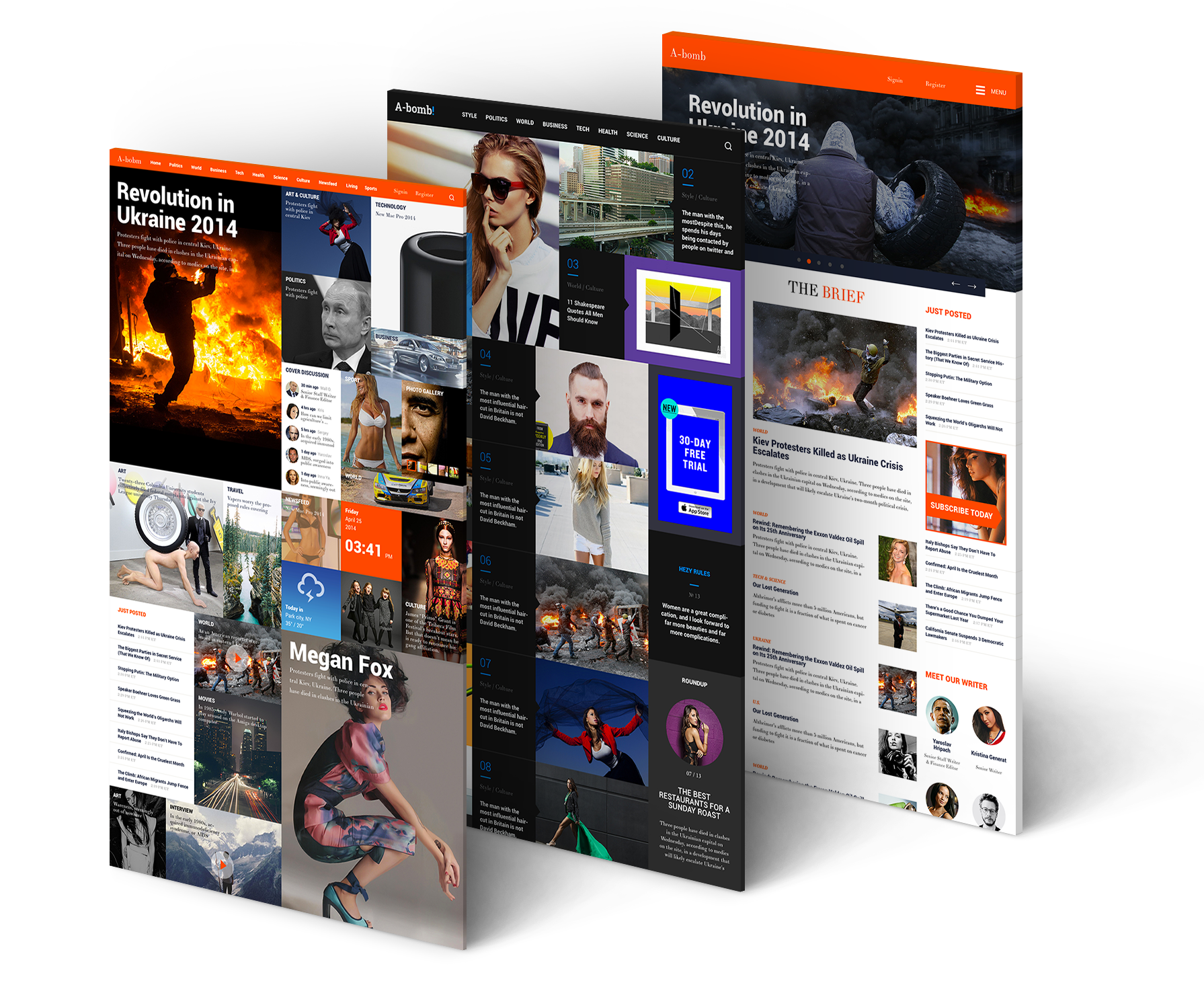 A-bomb is a wonderful template. Great for review, news, magazine, blog and fashion sites. Design is bright, rich and youth.